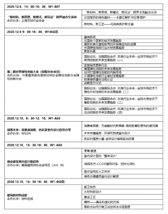 SURFACES China 将重点关注地面及墙面材料产业链,现场展示涵盖瓷砖、石材及地墙面相关产品、铺装保养技术与设备、家装与工装设计等多方面,同期举办的专业学术会议携手美国建筑师协会全球区(AIA IR)、上海石材行业协会、中国建筑装饰装修材料协会弹性地板分会弹性地板分会、趋势预测权威机构WGSN以及材料在线,特邀行业专家、知名建筑师和设计师从源头呈现关于新产品、新工艺、系统设计思路及未来趋势解读等精彩内容,畅谈地面墙面材料行业未来发展。