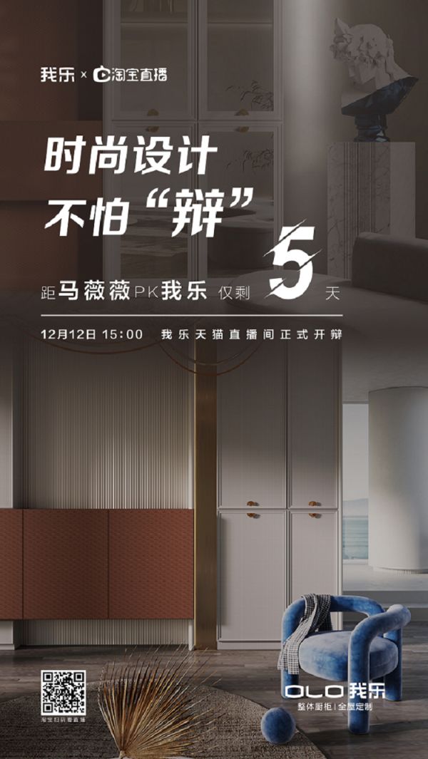以12月12日20点我乐家居联手知名辩手、制作人“金句女王”马薇薇将在天猫直播间开启的直播大秀来说。活动预告显示,作为2020年家居直播界的收官大作,各种优惠自不在话下,定金翻倍、大牌惠送、爆品秒杀、红包福利等系列重磅福利应有尽有。重点在于,继“双十一”我乐家居&高圆圆直播大胜后,它或将再造一场家居新零售的另类“神 话”。