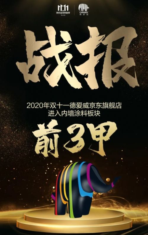据了解,德爱威去年首次参加京东“双11”活动就进入了平台内墙涂料榜单前三甲。其中,德爱威童年小象儿童漆更是斩获京东儿童漆单品销量第一,创造了涂料电商零售销量的神话。