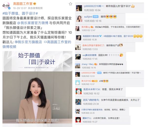 我乐家居也紧跟时代,于10月31日联合国民女神高圆圆,开启了一场主题为“始于颜值,「圆」于设计”的千城千屏直播,与我乐家居全国经销商联动了起来,将直播带货的玩法推向了高潮。