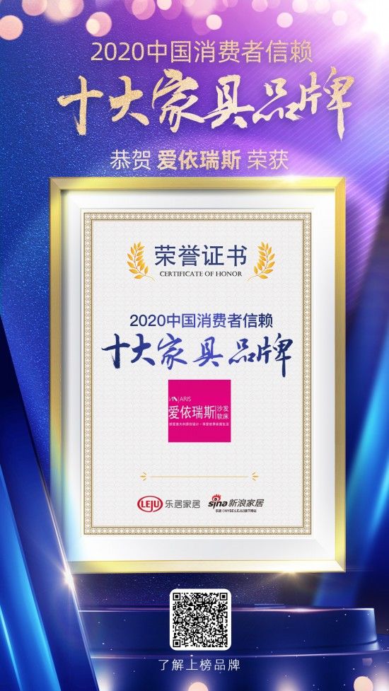 其中,爱依瑞斯从53个候选家具品牌中脱颖而出,成功夺得“2020中国消费者信赖十大家具品牌”称号。