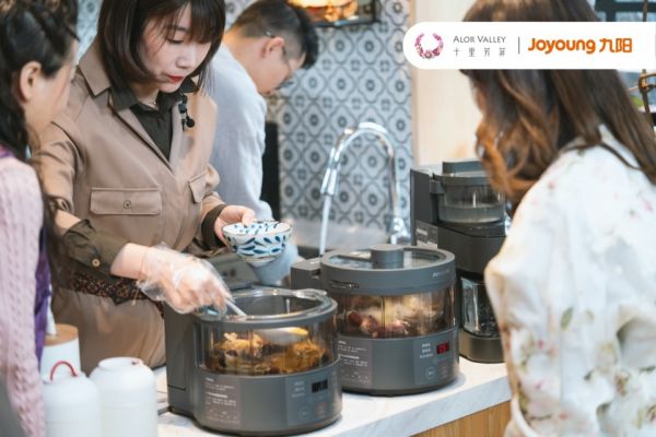 新一代九阳蒸汽饭煲制作的无水鸡汤成为当天最受欢迎的美食之一。