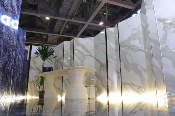 这几款产品我们是通过产品的立体感、颜色还原、视觉还原还呈现其天然质感。实际上我们看天然的产品为什么会受到很多设计师的追捧?因为它确实是纹理在以前的瓷砖产品上是代替不了的,后来的人造石材也是代替不了的,这次我们的独体煅造石材,是通过150多种工艺随机渗透的方式将它模拟出来的,基本上相似度能达到95%以上,所以在用材上带来了一场巨大革命。