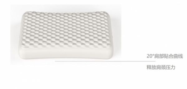 除此之外,更是研发出了悬浮中空的专业设计,更加贴合肩颈曲线,有效承托头部下压后及肩部的不同压力,优化广大消费者不同软硬度的要求,通过凹坑中不同高度的凸起变化实现不同压力的变形率,达到不同人群的真正需求。
