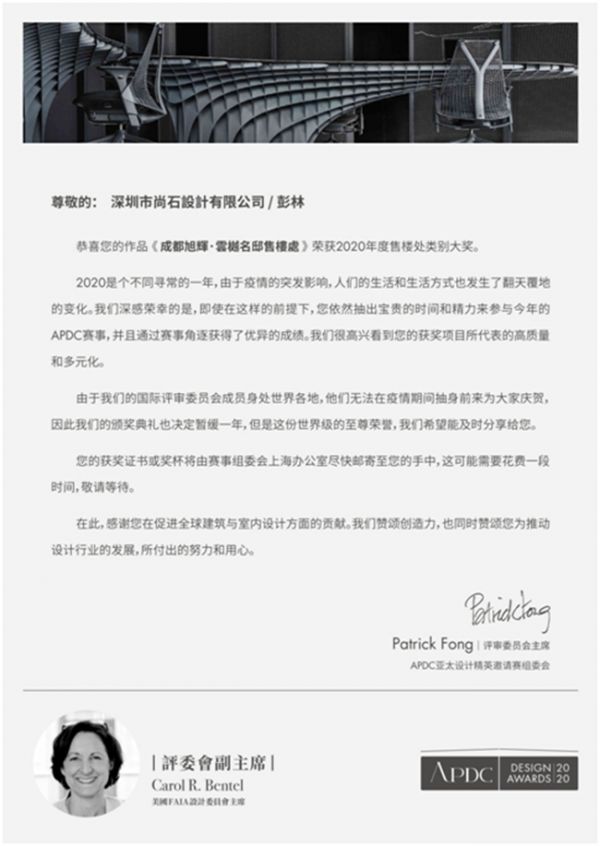 而SUNS设计从国际百项作品中脱颖而出,荣获APDC亚太设计大奖,是2020年的荣誉之至,SUNS团队因此倍感殊荣,感谢亚太组委会的认可!也感谢甲方客户的支持~