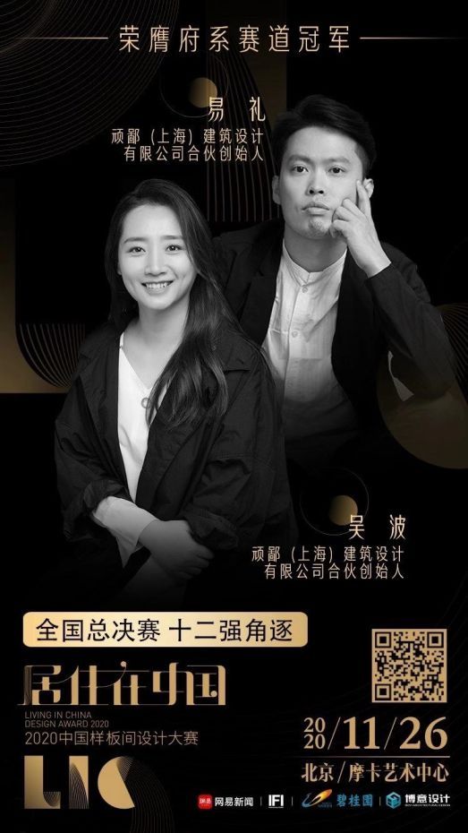 吴波&易礼:非常高兴能获得「居住在中国2020设计大赛」府系赛道的金奖,这对我们团队来说是一次非常大的鼓励。感谢网易和碧桂园组织了这次大赛。