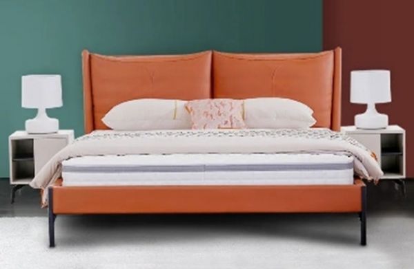依丽兰家具真皮软床采用低饱和度的橘黄色作为主色调,明朗活泼又不失大气,搭配严选舒适的头层牛皮材质,柔软透气而又坚韧耐用,无论是从观感还是从体验感,都充满了高级感。同时依丽兰家具真皮软床摆脱了传统厚重的床架设计,选择了五金高脚床脚设计,让笨重的软床瞬间变得轻盈和极简,为底部清扫也预留出了空间。
