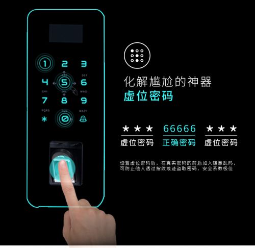 除指纹识别解锁外,唐缔智能锁还拥有密码、卡片、手机APP、钥匙等多种解锁方式,并具备虚位密码组合功能,不管在正确的密码前后加几位数,只要中间有连续正确的密码,就能解锁,让主人便捷开门的同时保障家门安全。