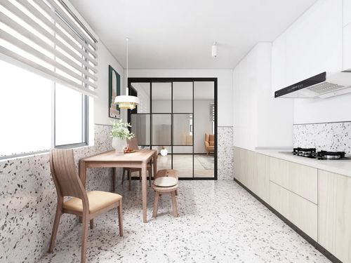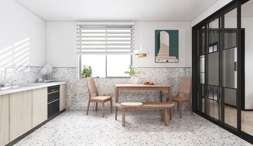 没有完全开放式的客餐厅,把餐厅搬进厨房也无妨!原木餐桌,清新自然,配以条凳,既节约空间,又有一丝童年趣味。
