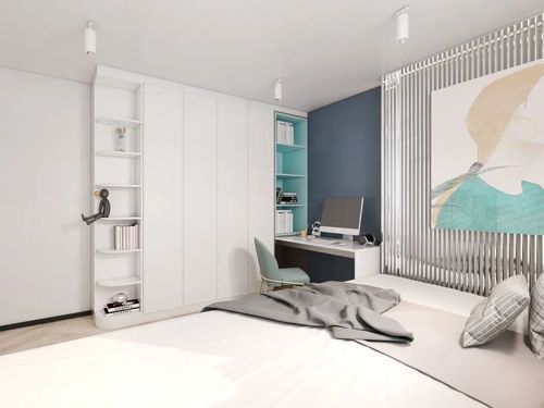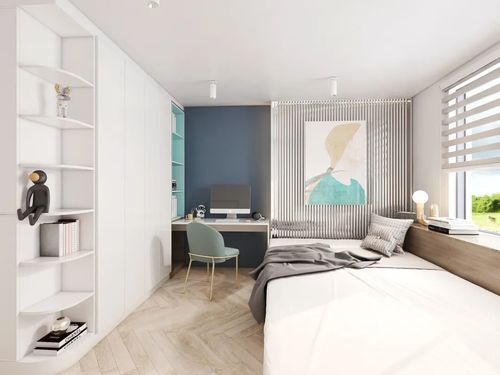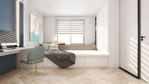 没有独立书房,那就在卧室挤出一个学习办公区。全屋定制的卧室,足够满足日常的收纳功能,也是潜心进修的理想地点。