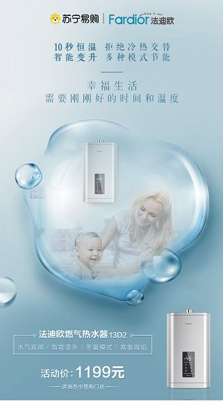 法迪欧燃气热水器13D2则搭载了全新一代恒温系统,通过水气双调实现10秒恒温,温差波动仅±0.5℃,能够将热水送到全家各处的水龙头,即开即热不用等;还可以根据季节切换变升模式和冬夏模式,按需匹配,高效更节能。同时,这款双十二福利价低至1199元的燃气热水器采用了健康抑菌的无氧铜水箱,具有智能防冻、故障自诊断、熄火保护、用气保护等全效防护,全面捍卫家庭用水安全。