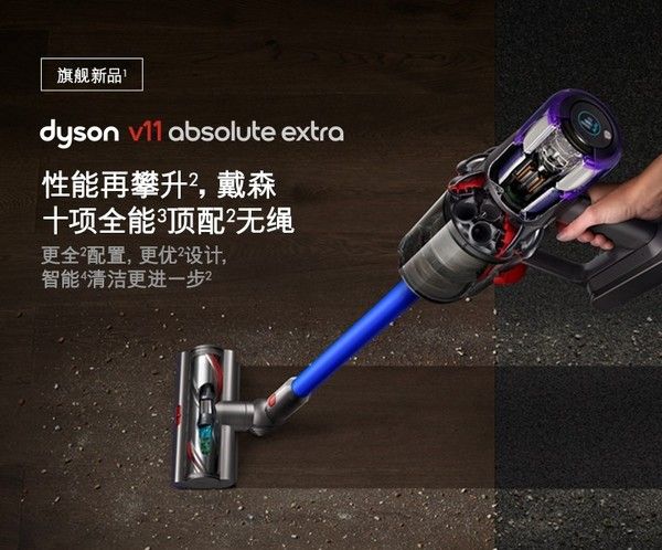 戴森算是国内外非常具有代表性的家用吸尘器了,虽然其吸尘器产品都属于高端系列,溢价较高,但是还是止不住消费者的喜爱与追捧。戴森V11 Absolute作为戴森目前的旗舰款无线吸尘器,拥有高达185AW的强劲吸力,可高效吸除地板表面及缝隙内的颗粒状微尘,还可以吸附尘螨、花粉及细菌等过敏原。此外,V11 Absolute配合Dyson DLS动态负载传感技术,在自动模式下可智能感知刷条阻力,在硬质地板和地毯之间自动调整功率,免去了清洁中更换吸头的麻烦,但这一功能仅限高扭矩地毯吸头,其他吸头配件均无法调节吸力,可见在智能、人性化方面还不够完善。V11 Absolute的高品质让人蠢蠢欲动,但高达近5500元的售价又让人望而却步,如果你是没有预算限制的人,那就将其收入囊中吧!
