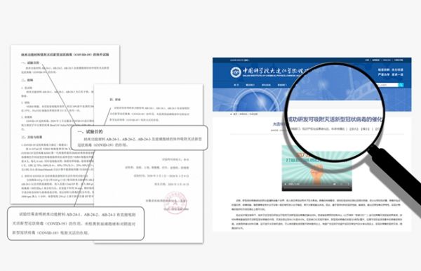 在此设计理念指导下,中国科学院大连化学物理研究所(DICP)成功研发出可吸附灭活新型冠状病毒的新型纳米催化材料AB-24。且据安徽省疾病预防控制中心(ACDC)进行的病毒灭活实验结果表明,该材料具有直接吸附灭活新型冠状病毒的作用。在安徽省疾病预防控制中心(ACDC)实验环境中,新型冠状病毒的浓度为5微克/毫升,远高于实际生活场景中的病毒致病浓度。此类固体催化材料无毒,且不溶于水及有机溶剂,可以制成颗粒或担载于各种载体之上,有望广泛应用于抗疫产品及日常空气及水净化用品上,实现对病毒的吸附灭活,提高防护水平。