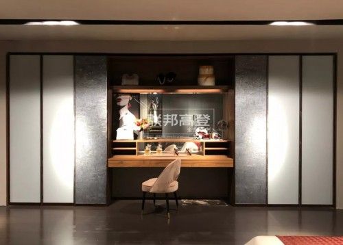 联邦高登全屋定制“内嵌式”衣柜,有效节省了室内空间,中部取巧位便能得到梳妆台,换衣化妆一步到位无需再多处走动,还起到延伸视觉的效果,打造空间宽阔感。太空灰柜和原木色柜门碰撞让沉稳内敛的空间多了几分随性,在衣柜末端"转型"便得到一个别致的工作区,用起来非常方便。