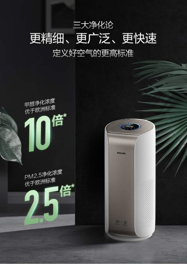 飞利浦空气净化器AC3858的三大净化论,即通过滤清污染源头,打造出更精细、更广泛、更快速度的净化性能,实现甲醛净化浓度10倍优于欧洲标准,PM2.5净化浓度达到2.5倍优于欧洲标准[1]的神奇净化能力。彻底重塑室内空气,把优质新风代入家中,超越安全健康的欧洲标准,实现全家放心自如的呼吸。