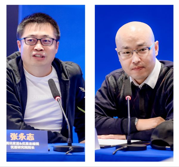 腾讯家居&优居总编辑、优居研究院院长张永志(左);中国家具协会软垫家具专业委员会秘书长杨磊(右)
