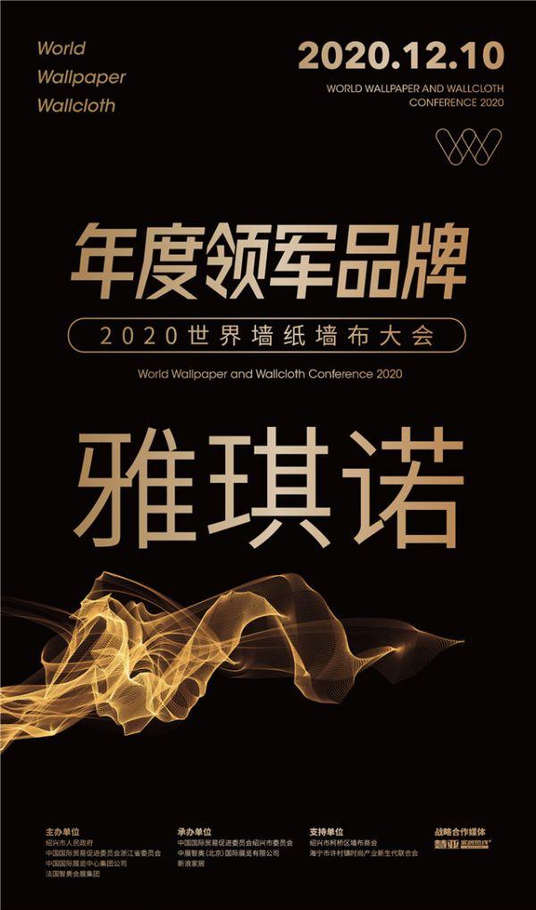 12月10日,由绍兴市人民政府、中国国际贸易促进委员会浙江省委员会,中国国际展览中心集团公司、法国智奥会展集团主办,中国国际贸易促进委员会绍兴市委员会、中展智奥(北京)国际展览有限公司、新浪家居承办,绍兴市柯桥区墙布商会作为支持单位协办的“2020世界墙纸墙布大会”在绍兴柯桥鉴湖大酒店隆重举行。雅琪诺作为行业引领品牌,数年来深耕墙纸墙布行业,完成多重突破与革新,以卓越的行业表现,荣获 2020墙纸墙布大会“年度领军品牌”。这也再次证明了雅琪诺在墙纸墙布行业的深厚品牌实力和领导者地位。