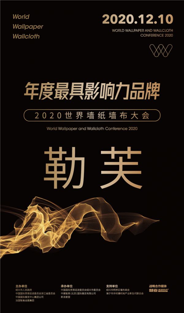 12月10日,由绍兴市人民政府、中国国际贸易促进委员会浙江省委员会,中国国际展览中心集团公司、法国智奥会展集团主办,中国国际贸易促进委员会绍兴市委员会、中展智奥(北京)国际展览有限公司、新浪家居承办,绍兴市柯桥区墙布商会作为支持单位协办的“2020世界墙纸墙布大会”在绍兴柯桥鉴湖大酒店盛大举办。勒芙多年来始终坚持推行“悦心”生活,倡导“心悦而为,为而悦心”的生活理念,自成立来一直严格把控墙布品质,精益求精,匠心创制,在此次大会上顺利获得“2020世界墙纸墙布大会年度最具影响力品牌奖”。
