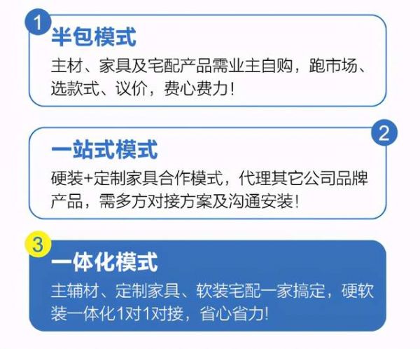 目前业内主要流行半包、一站式、一体化三种装修模式,而这三种模式其实从你选择的那一刻就基本决定了你的省心程度。半包模式需要自购材料,跑市场、议价都是需要亲自上阵,对业主时间上自由度的要求是很高的;一站式是装修公司和其他材料公司合作的模式,仍然需要业主和多方对接;一体化模式是从硬装到软装都在一家搞定,虽然所用材料也是其他品牌的,但是只需要对接该装修公司就可以。