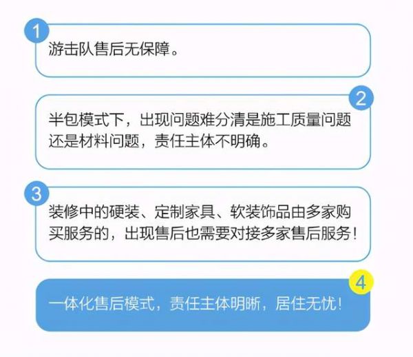 装修所涉及的项目和内容实在繁琐,在过程中出现各种小纰漏都是非常有可能的,因此在选择装修公司的时候,业主还要留心给自己再上一道保险,就是看看万一发生了问题,谁来负责?如果是一开始选择了半包或者是一站式这样的模式,更要留意因为分家购买而导致的互相推诿责任的问题。