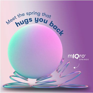 尤为值得一提的是SIMBA床垫中一项名为miQro独立袋装弹簧的专利。与传统并常见的弹簧不同,SIMBA的miQro弹簧能根据身体形状自动旋转,三维包裹人体形状,并根据身体重量及睡姿迅速调节。