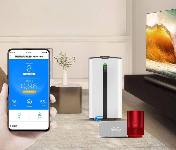 泰拉蒙空气净化器是真正意义上的智能产品,带有WIFI、风速、自动、睡眠、负离子等多种模式,当开启自动模式时,能匹配当前空气质量进行净化,空气质量差,净化力度大,当净化到一定程度时又会降低净化档位,环保运行。不仅如此,在关机的状态下,如果用户在手机APP上开启了智感功能,机器感应到室内空气较差,也会自启动进行净化,十分智能。打开负离子模式,一键释放上百万负离子,瞬间营造森林般沁人心脾的清新空气环境。