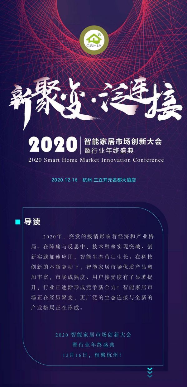 新聚变•泛连接 | 2020智能家居市场创新大会暨行业年终盛典,12月16日与您相约杭州!