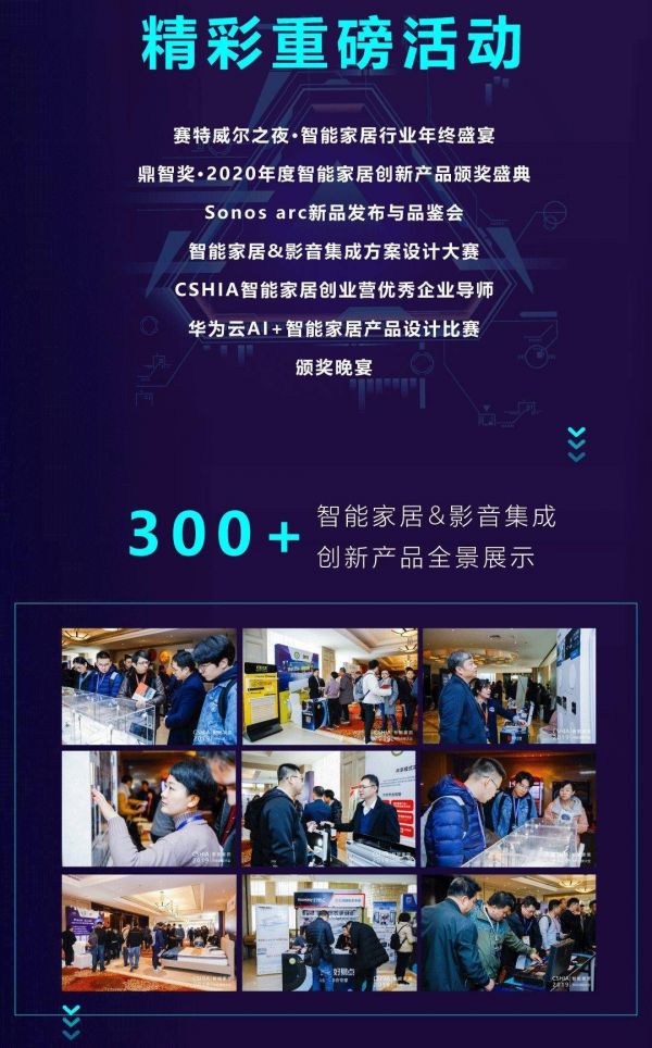 大会同期将盛大举办赛特威尔之夜、Sonos Arc新品发布与品鉴会。隆重举办鼎智奖·2020年度智能家居创新产品颁奖盛典,并逐一揭晓智能家居&影音集成方案设计大赛、CSHIA智能家居创业营优秀企业导师、华为云AI+智能家居产品设计比赛等多项行业年度殊荣。