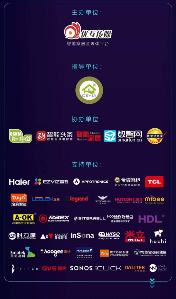 以“新聚变•泛连接”为主题的2020智能家居市场创新大会,由优互传媒智能家居全媒体平台主办。本届创新大会将会进行18场精彩纷呈的主题演讲,全面解读智能家居生态创新格局。现场展出超过百余款智能家居年度创新产品,梳理年度产品创新方向。共同聚焦智能家居行业创新趋势,重磅发布智能家居市场年度创新报告。