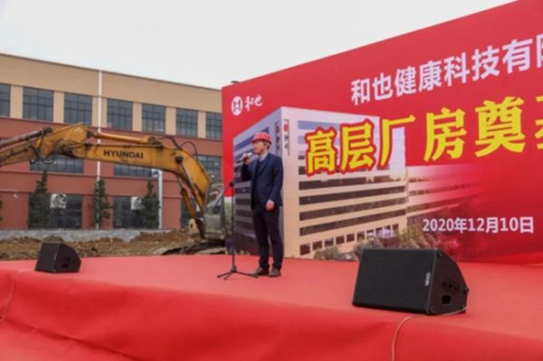 今天开工的年产250万套磁性保健床垫及相关用品生产线建设项目高层厂房是和也全系列产品生产线项目的一个重要节点工程。整个厂房共有9层,总建筑面积达6万平米,计划投资超过一亿元。待项目建成后,它将为和也的发展提供充足的空间和坚实的保障,更将成为和也前进道路上的强大助推力量。