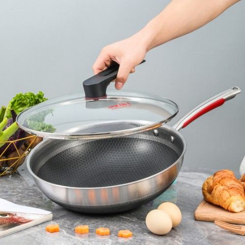 蜂窝锅因其“蜂窝蚀刻技术”闻名厨具市场。运用德国蚀刻工艺,在锅内蚀刻出凹凸的精细纹理。其中,凸出部分构成一张无涂层的蜂窝网状结构,不粘层仅覆盖在纹理凹陷处,减少锅铲与涂层的接触,解决了传统不粘锅涂层易脱落的问题。不仅延长了不粘锅的使用寿命,更保障了消费者的饮食健康。