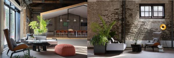 精心挑选的家具于两侧对称而置,像在邀请三五好友围炉团坐。阳光洒在浸入历史的斑驳墙面,摇曳的树影在地面闪烁,光影勾勒的美感让时光穿梭于历史与当下,畅想着港区的过去与未来。
