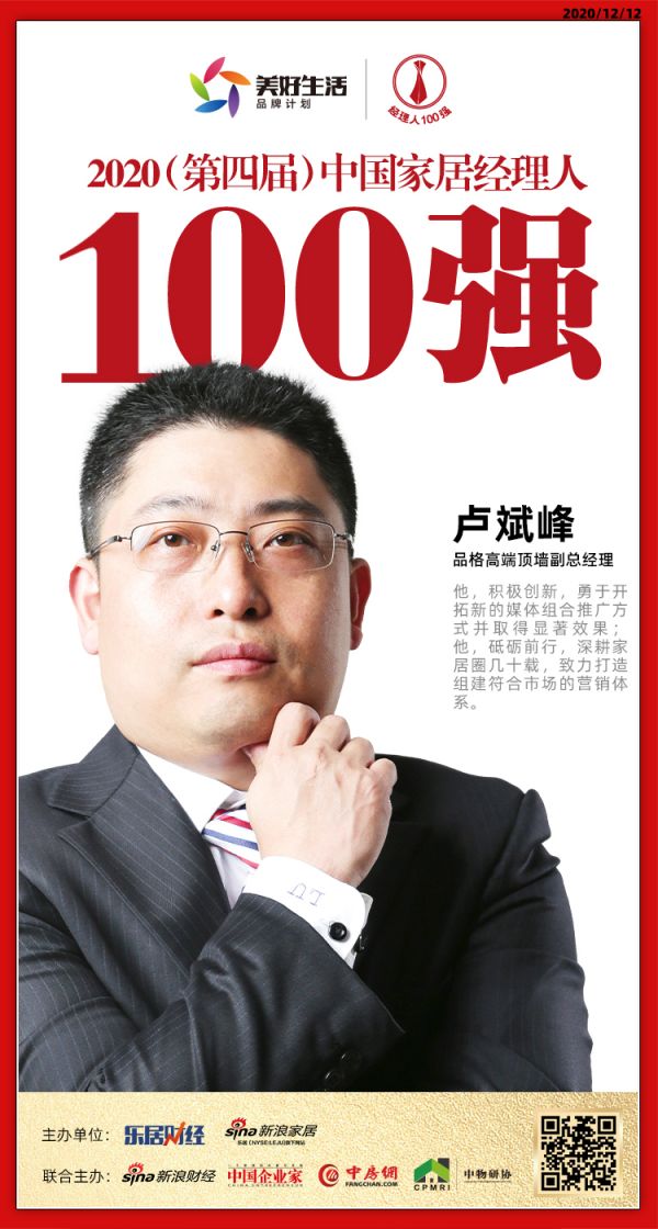 快讯:品格高端顶墙副总经理卢斌峰荣获2020中国家居品牌经理人100强
