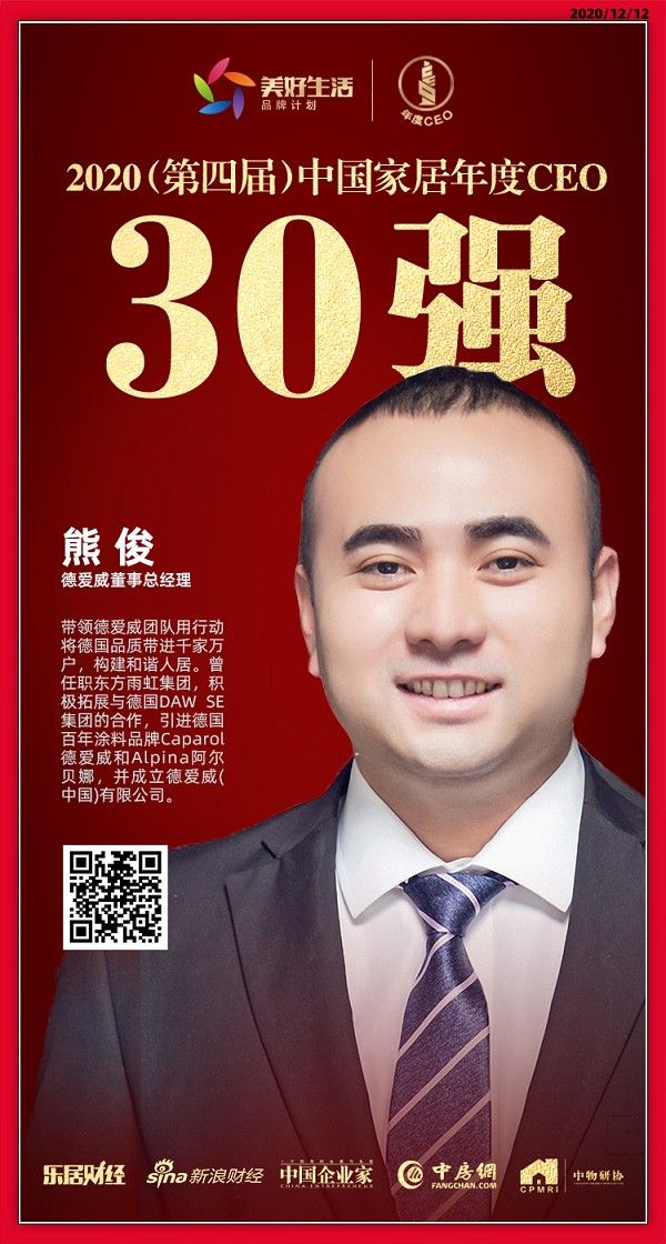 快讯:德爱威董事总经理熊俊荣获“中国十大家居年度CEO”30强