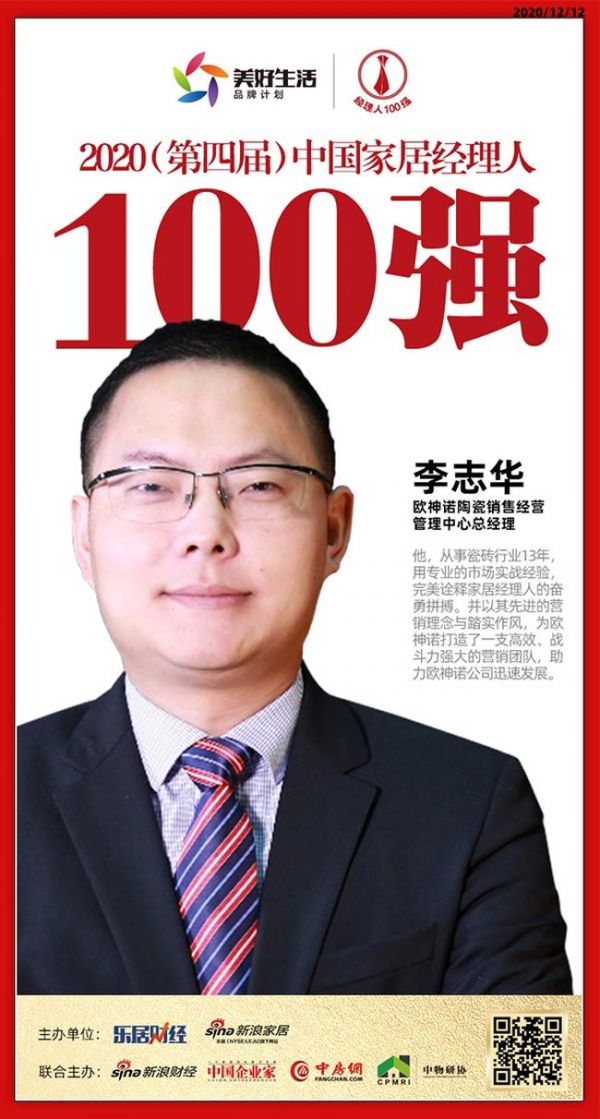 快讯:欧神诺陶瓷李志华荣获2020中国家居品牌经理人100强