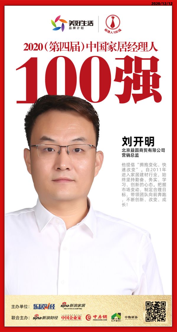 快讯:益圆木门刘开明荣获“2020(第四届)中国家居经理人100强”