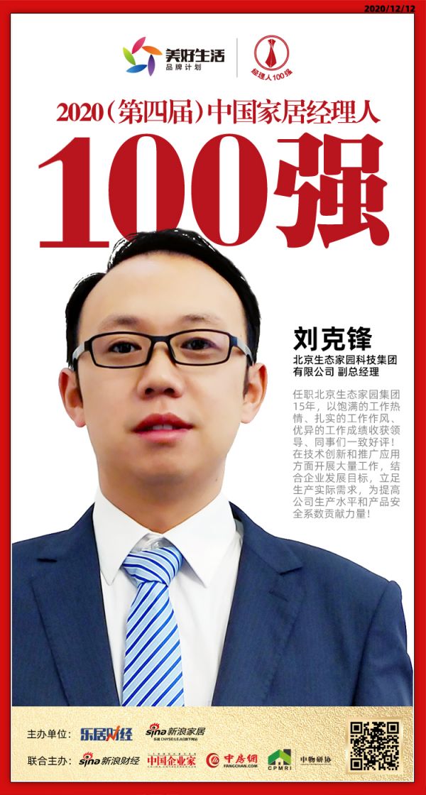 快讯:北京生态家园集团刘克峰荣获“2020(第四届)中国家居经理人100强”