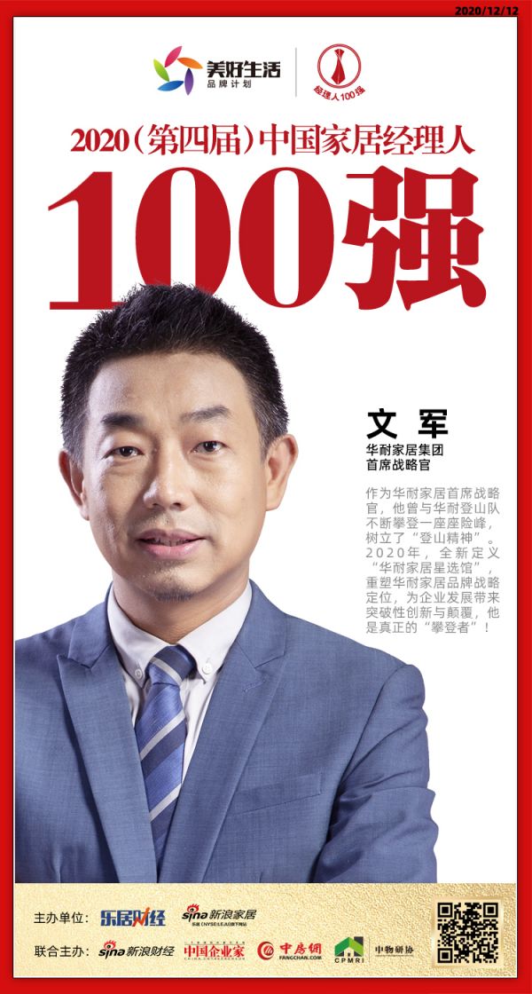 快讯:华耐家居文军荣获“2020(第四届)中国家居经理人100强”