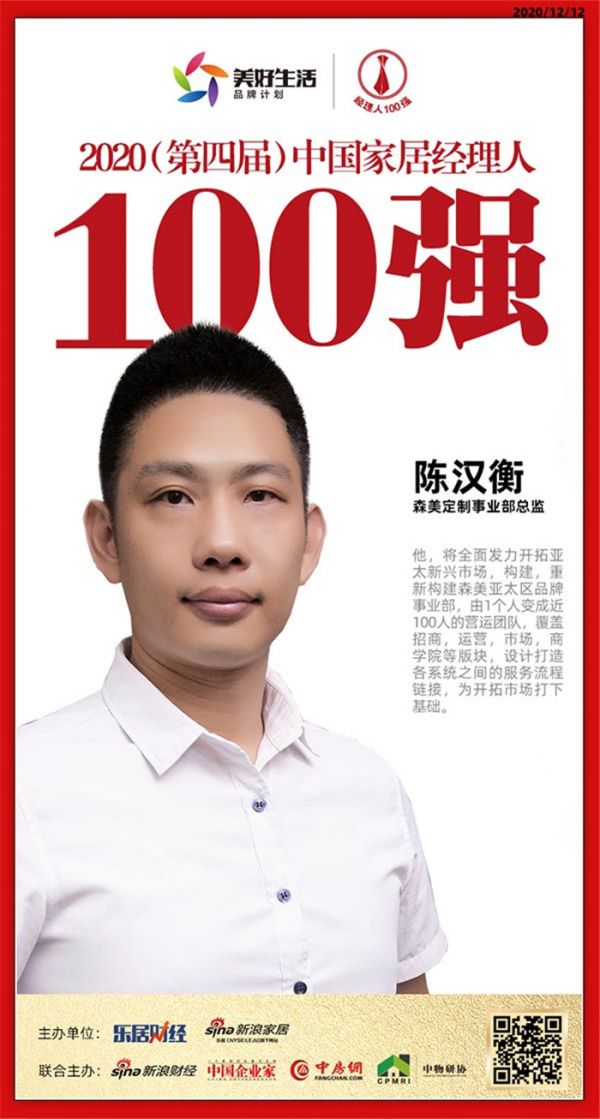 快讯:森美定制事业部总监陈汉衡荣获2020中国家居品牌经理人100强