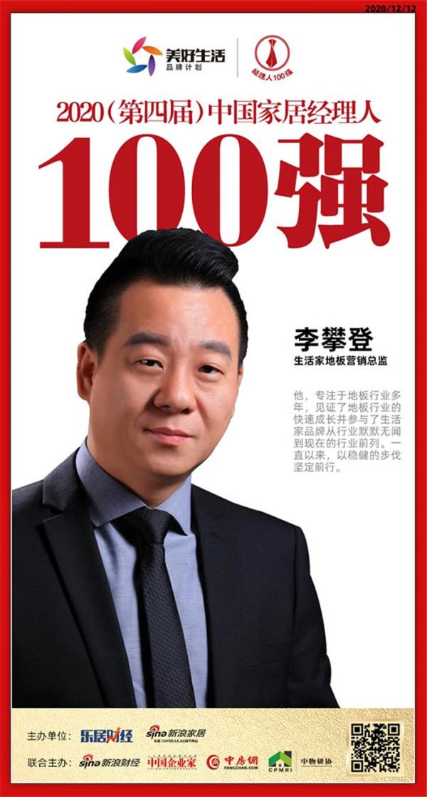 快讯:生活家地板营销总监李攀登荣获2020中国家居品牌经理人100强