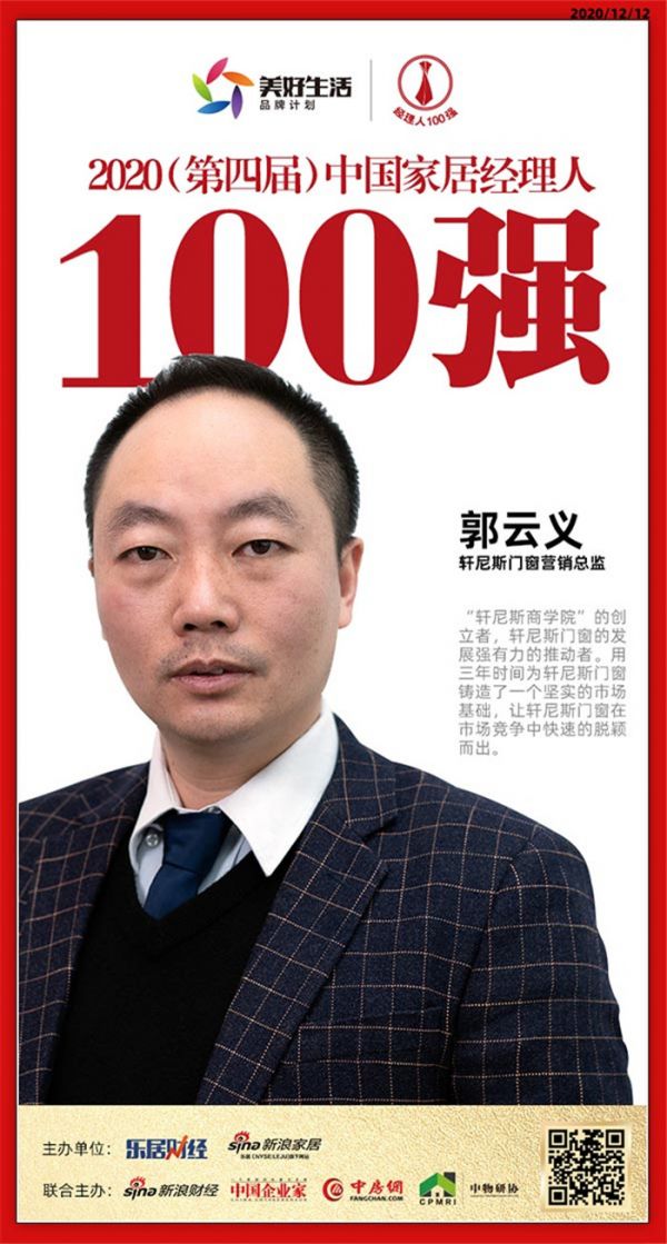 快讯:轩尼斯门窗营销总监郭云义荣获2020中国家居品牌经理人100强