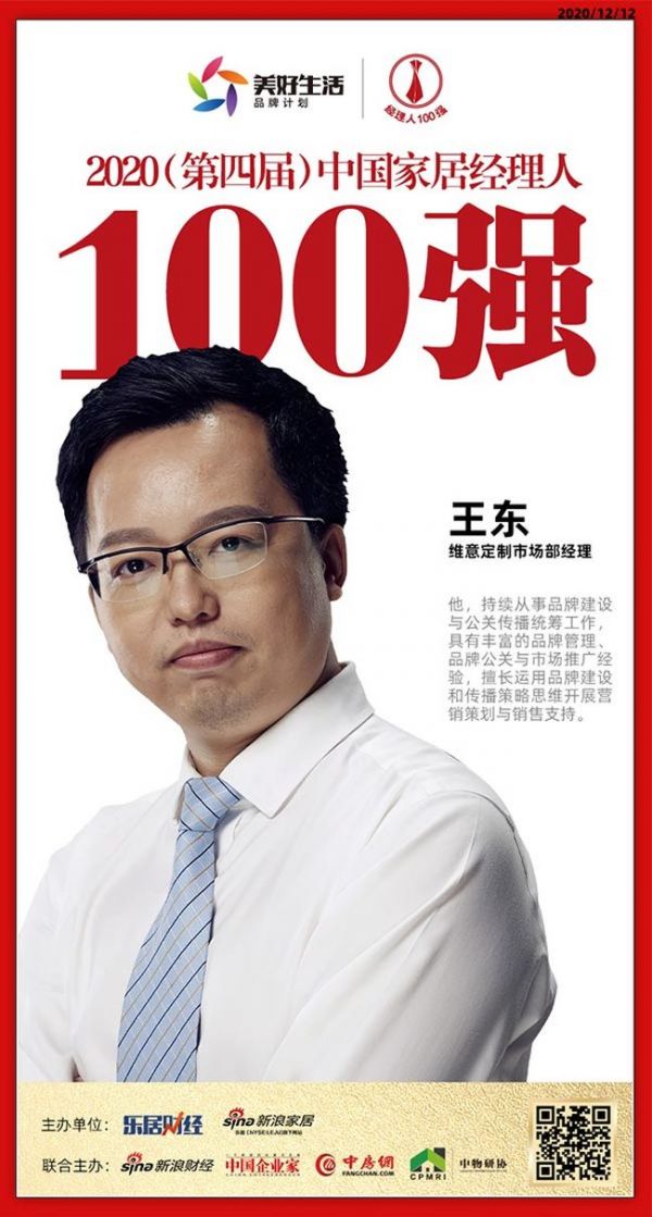 快讯:维意定制市场部经理王东荣获2020中国家居品牌经理人100强