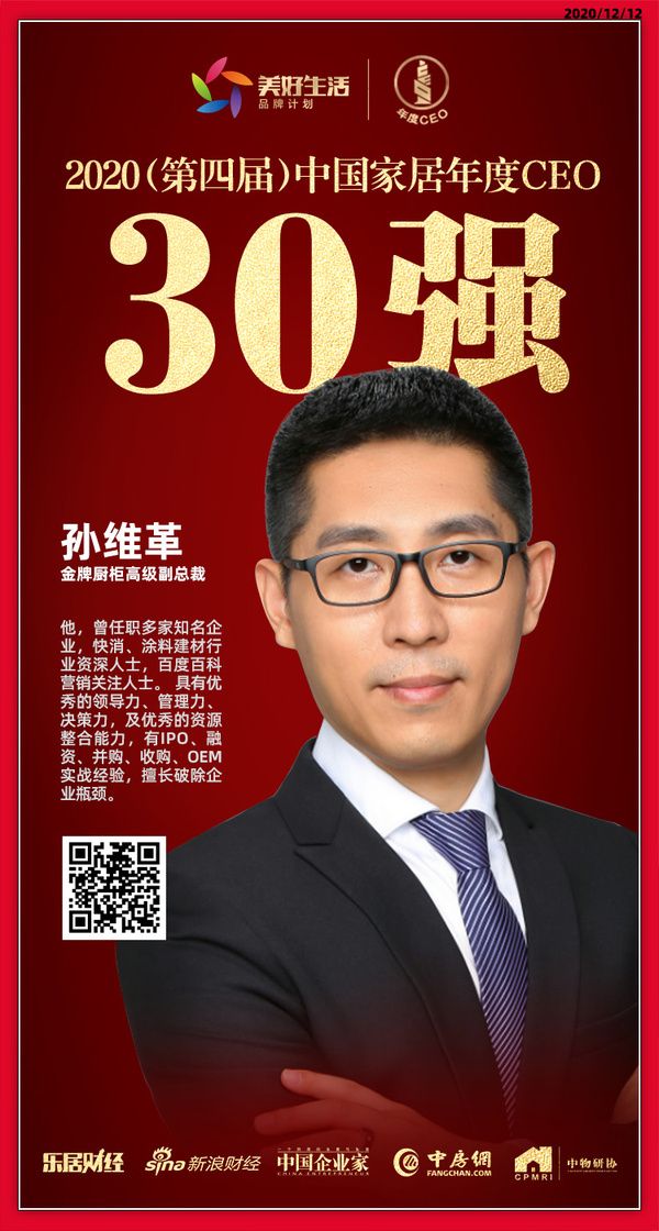 快讯:金牌厨柜高级副总裁孙维革荣获“中国十大家居年度CEO”30强