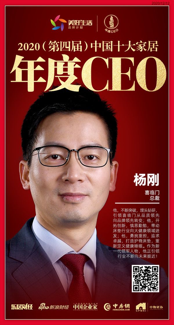 快讯:喜临门总裁杨刚荣获2020中国十大家居年度CEO