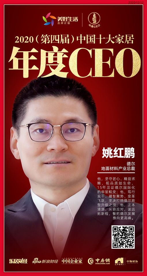 快讯:德尔地面材料产业总裁姚红鹏荣获2020(第四届)中国十大家居年度CEO