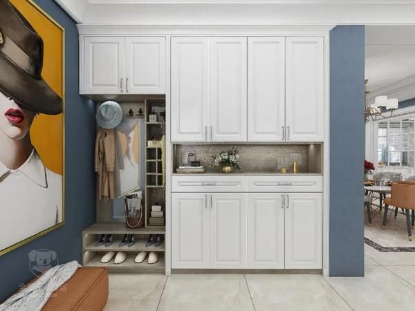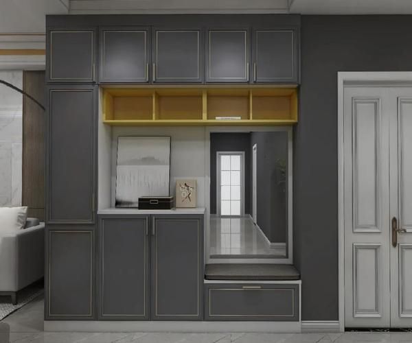 很多人为了方便,喜欢在玄关鞋柜安装镜子,这样出门前可以直接对着镜子整理妆容,方便省时。