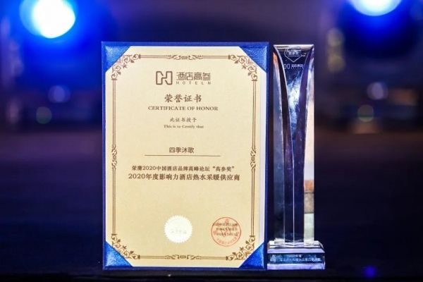 历时近两个月的大众点评和专家评委评审,四季沐歌凭借先进的产品技术和完善的服务体系,将“2020中国酒店品牌高峰论坛‘高参奖’-2020年度影响力酒店热水采暖供应商”收入囊中。此项殊荣的获得,不仅表明四季沐歌作为酒店产业链企业,其产品和服务质量已经得到行业的普遍认可,同时也是行业对四季沐歌未来发展前景的看好与期待。