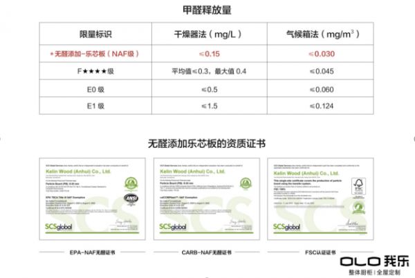 我乐家居一直以来所使用的“E0”级板材,甲醛释放量≤0.06mg/m³,比国家规定标准的E1级更加严格。而不久前,我乐家居又重磅推出了升级的“无醛添加·乐芯板”柜体板材,在“E0”级的高标准下精益求精,将甲醛释放量控制到≤0.03mg/m³,帮助消费者告别了甲醛焦虑,提供了更加安全的居家环境。
