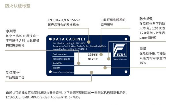 每一个认证的保险柜均拥有防火防盗等级的小蓝标,对于国内标准(3C现改为CSP),集宝安全性能至少达到国标B1及以上的安全等级,而非面上大多数保险柜仅有的A1级别。