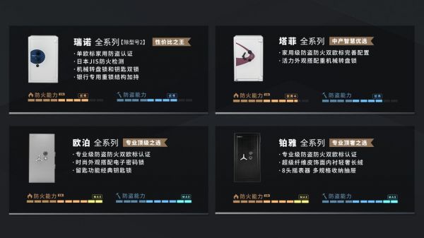 数据表明,中国市场上销售的保险柜90%以上只关注密码锁、智能报警等防开功能,并不具备真正意义上的防盗。社会盗窃事件的手段多变,仅带有密码锁、报警等防盗手段的保险柜早已无法为贵重物品保驾护航。选择保险柜就不仅要考虑防开,只有兼具防火、防抱走、防钻才能真正做到安全无忧。